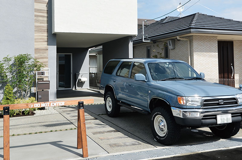 建物と一体化した屋根付き駐車場。ゆとりあるスペースは大切な車を雨や埃から守ってくれます。