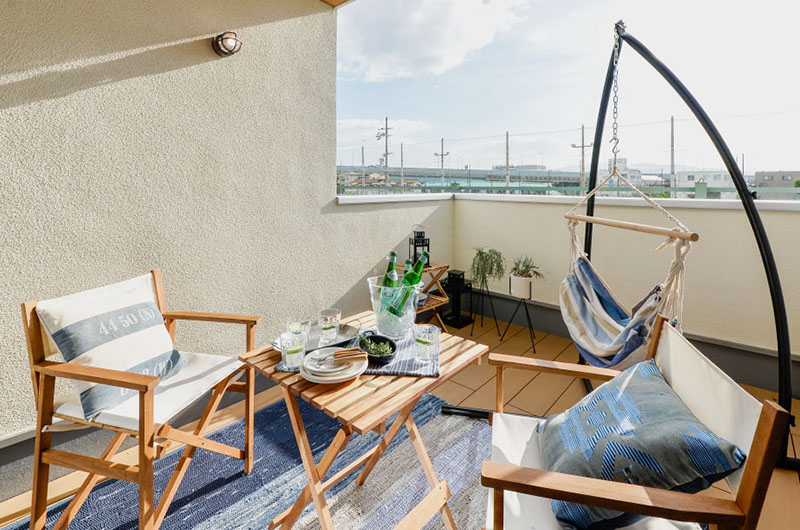 箱型のインナーバルコニー。周りの視線が気にならず、使い勝手のいいスペースです。