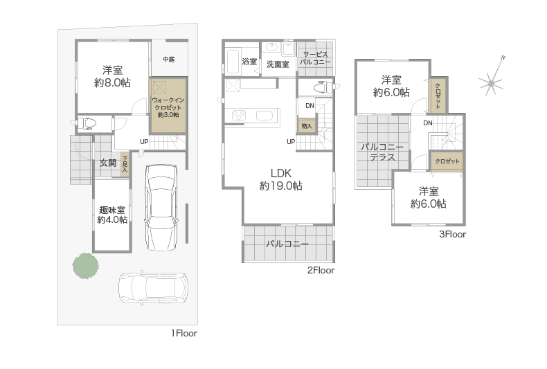 敷地面積30坪以上・2階リビング3階建・全区画フリープラン。