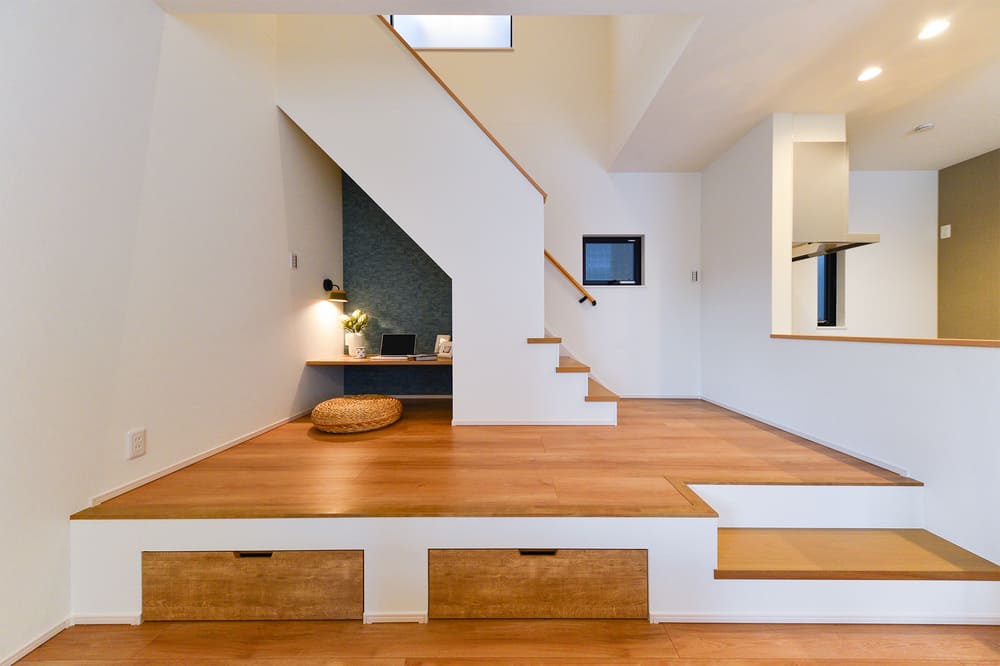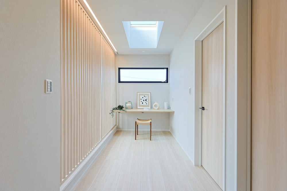 - キッチン横のカウンタースペースは、書類整理や学習スペースなど、家族みんなで使える便利な空間。