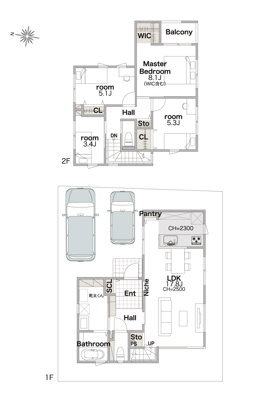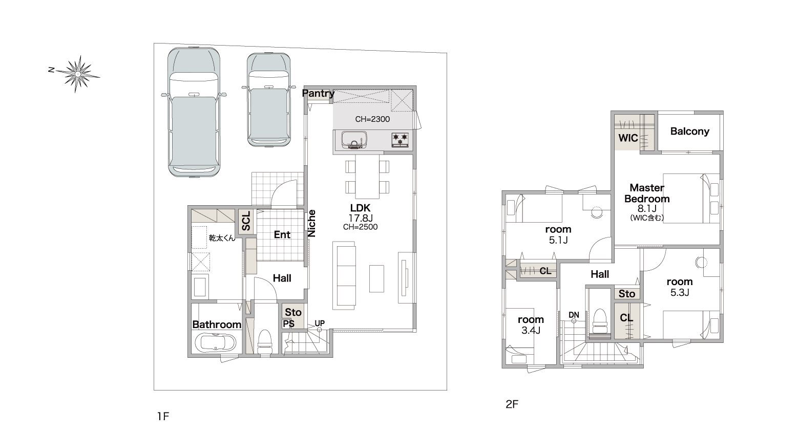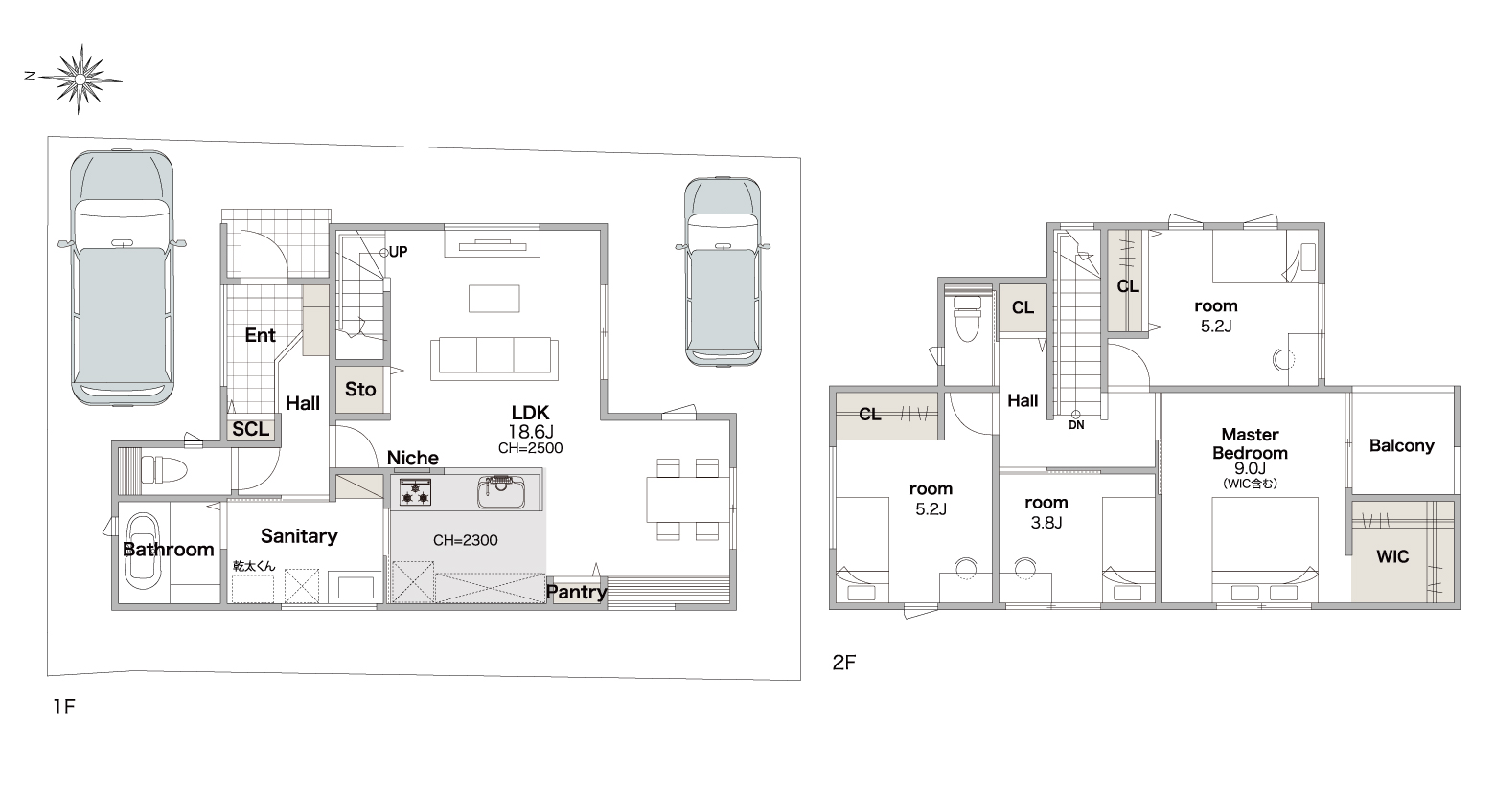 ■水回りを玄関近くに集約。帰宅後の手洗いや動線がスムーズです。