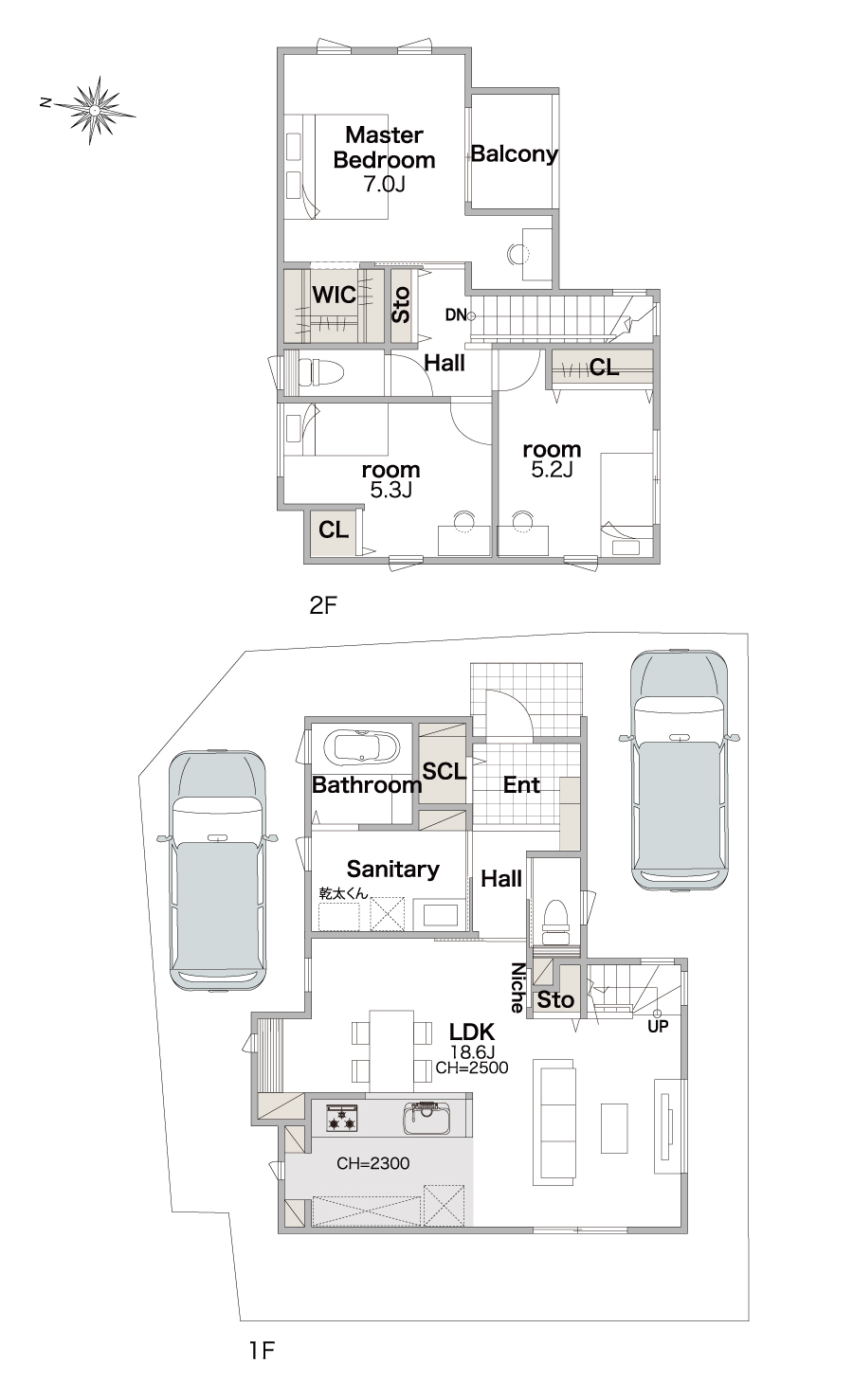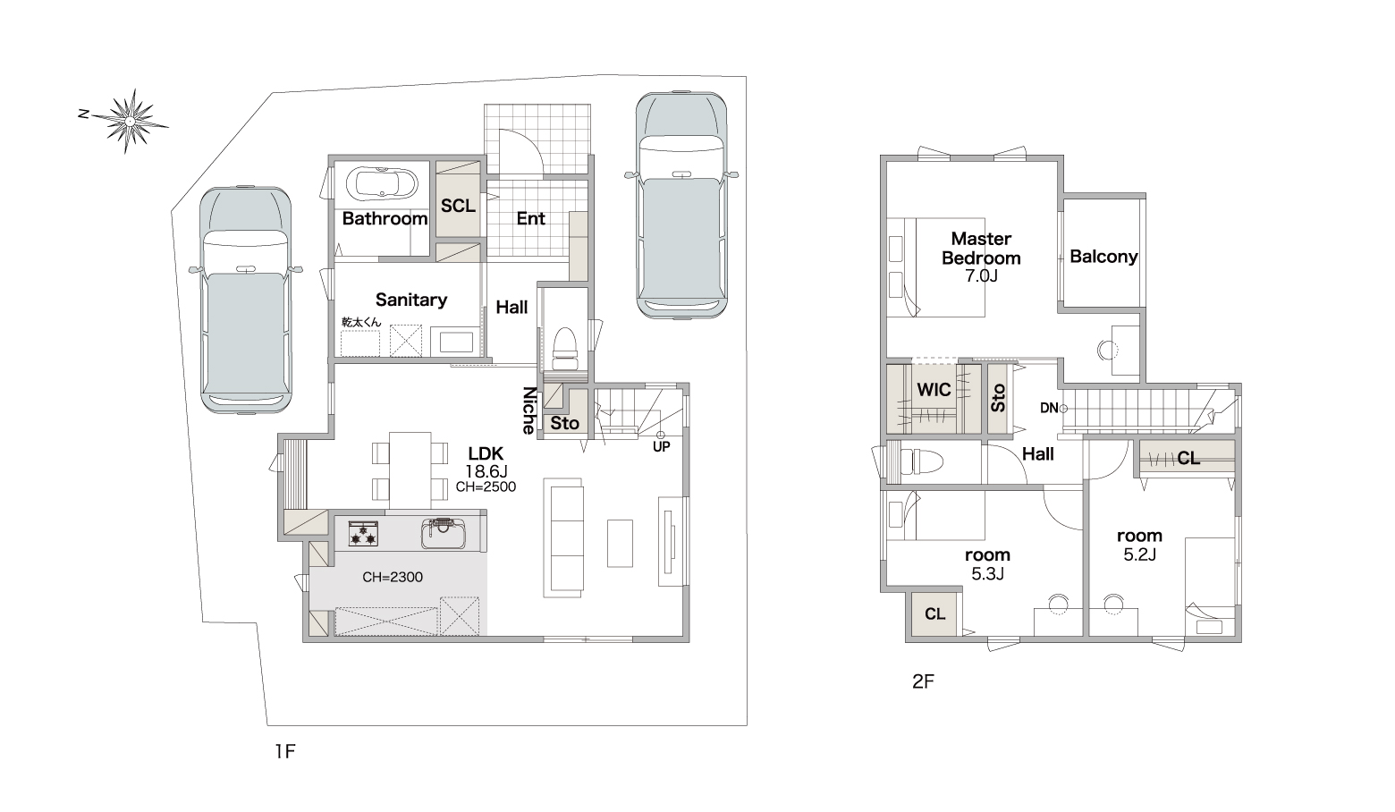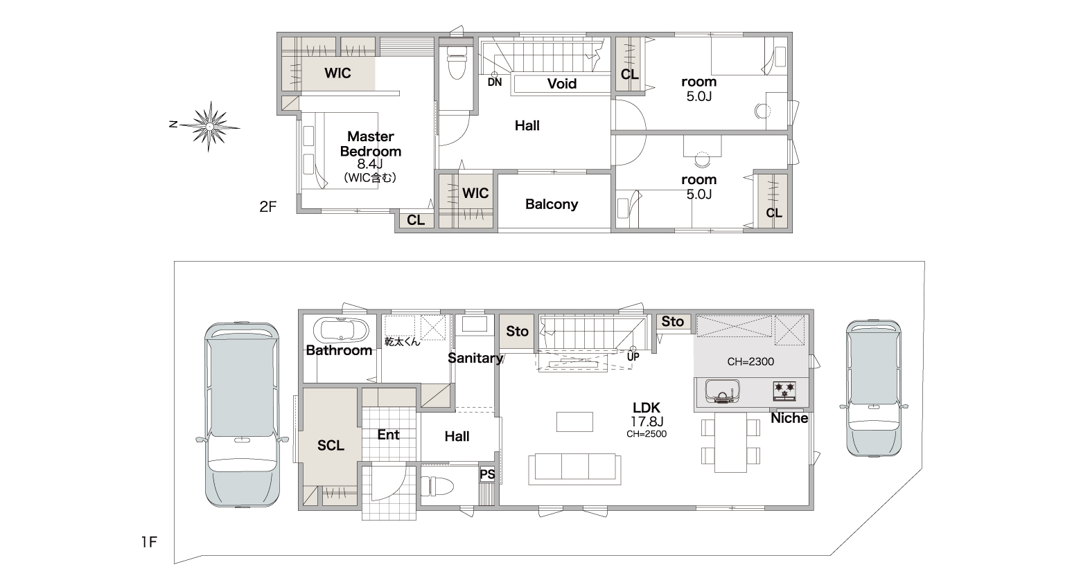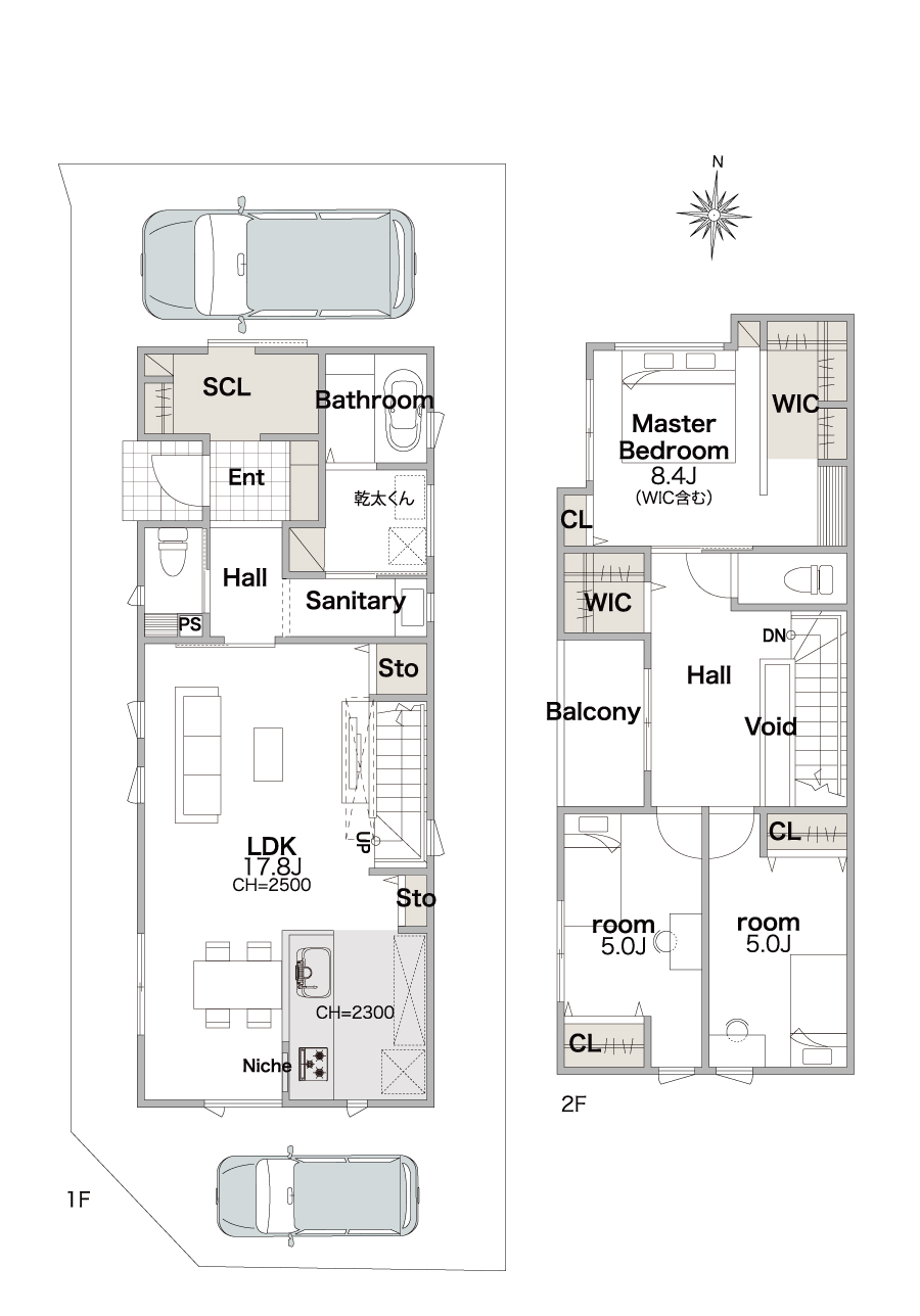 ■水回りを玄関近くに集約。帰宅後の手洗いや動線がスムーズです。