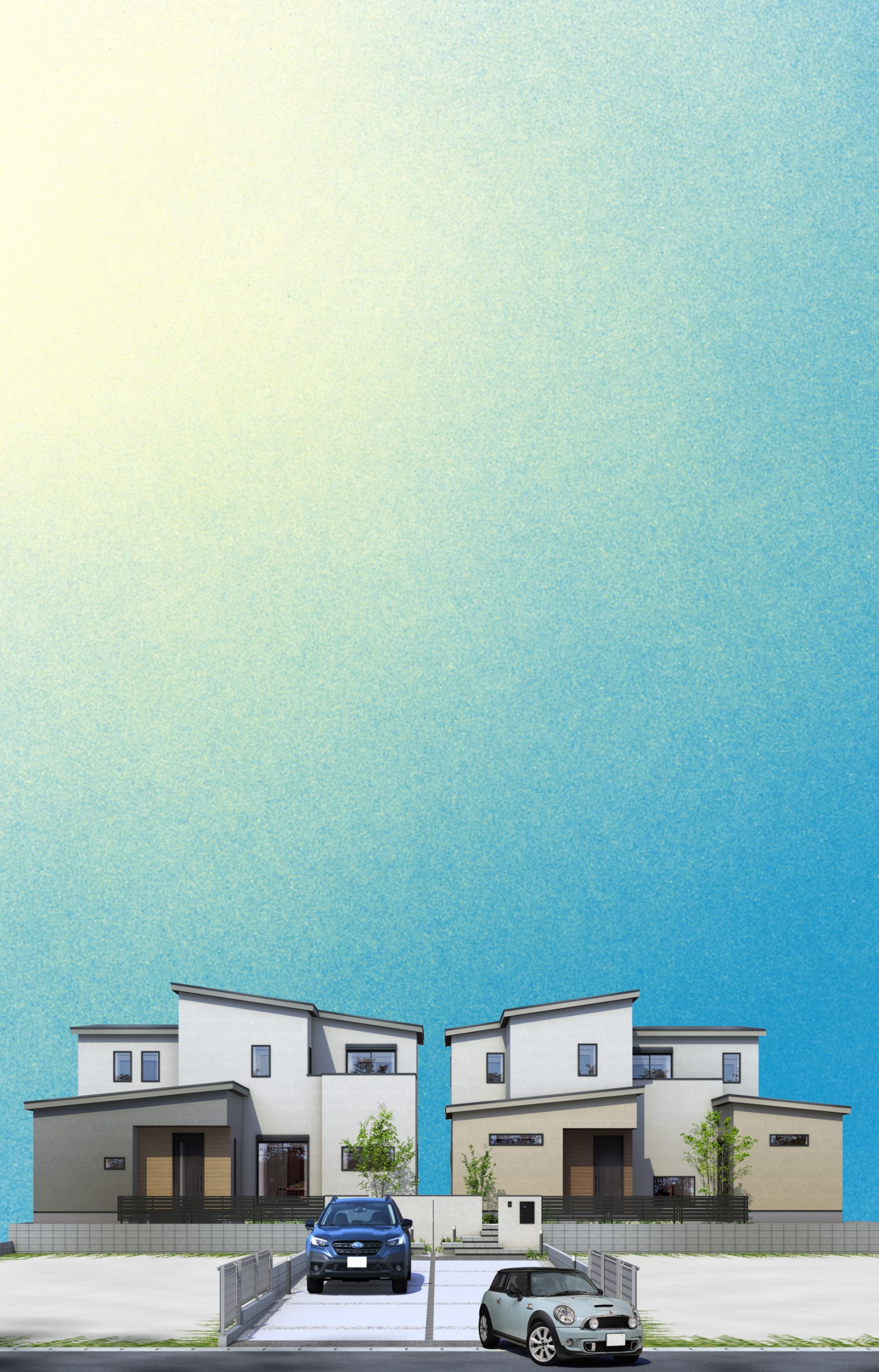外観完成予想パース(2・3号地):設計図を基に作成したもので形状・色等は実際とは異なります。施工上の理由及び改良のため、変更となる場合がございますのでご了承ください。